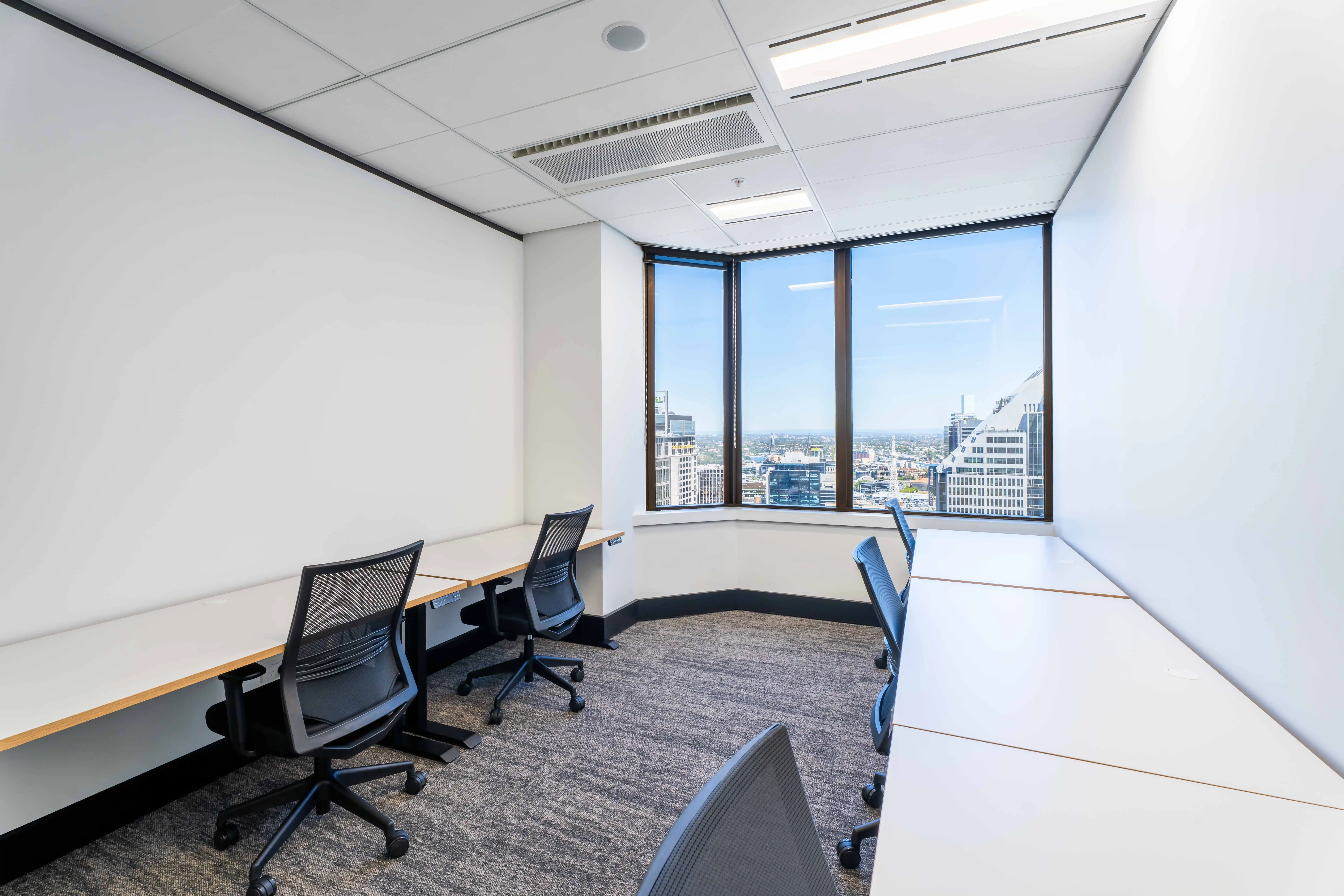 Level 23 and Level 31 at 52 Martin Place offers newly fitted out contemporary, high-quality external-facing private offices with panoramic views of the city. The flexible workspaces are designed for productivity, featuring private offices, meeting rooms equipped with video conferencing equipment, and phone booths to accommodate both focused work and team discussions.